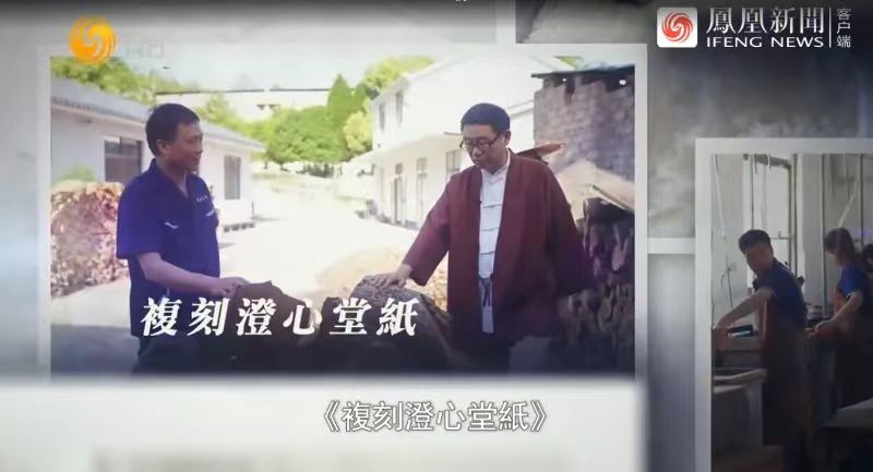 在黃山市凝霜文化發(fā)展有限公司,欄目攝制組全程記錄徽州楮皮紙第二代傳承人、非遺傳承人朱建新的徽州楮皮紙制作技藝?!段幕笥^園》總策劃、主持人王魯湘詳細了解徽州楮皮紙的優(yōu)勢,制作的傳承和發(fā)展,并與徽州楮皮紙第二代傳承人朱建新面對面暢聊古法造紙和新技的結(jié)合。